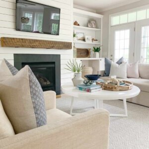Here’s a super cool and natural coffee table that I’m excited to show you, straight from the inspirational designs on The Coastal Oak blog. It’s got this amazing look that’s just perfect for 2024. What’s so great about it? It’s ultra-sleek, feels fresh, and adds this chill, beachy vibe to your room. Its round shape is just what you need for an easy-going space, especially if you’ve got an active bunch at home—no sharp corners to bump into.