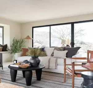 Now, again I’m going to show you one of the top coffee table choices by McGee & Co Studio, because in my opinion, they really create some of the most stunning ones in the entire design world. This table stands out with its bold, sculptural form—a true statement piece. Its dark color is a rich contrast against light-colored sofas, creating a focal point that draws the eye.