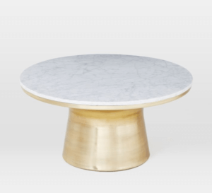 As we’re coming to the end of the article, I want to present you with this stunning coffee table that’s a blend of luxury and warmth. The table top boasts a crisp, white marble that gives it a rich and elegant feel. Below, the base is brushed brass with a warm, golden tone that adds a touch of glamour to any room.